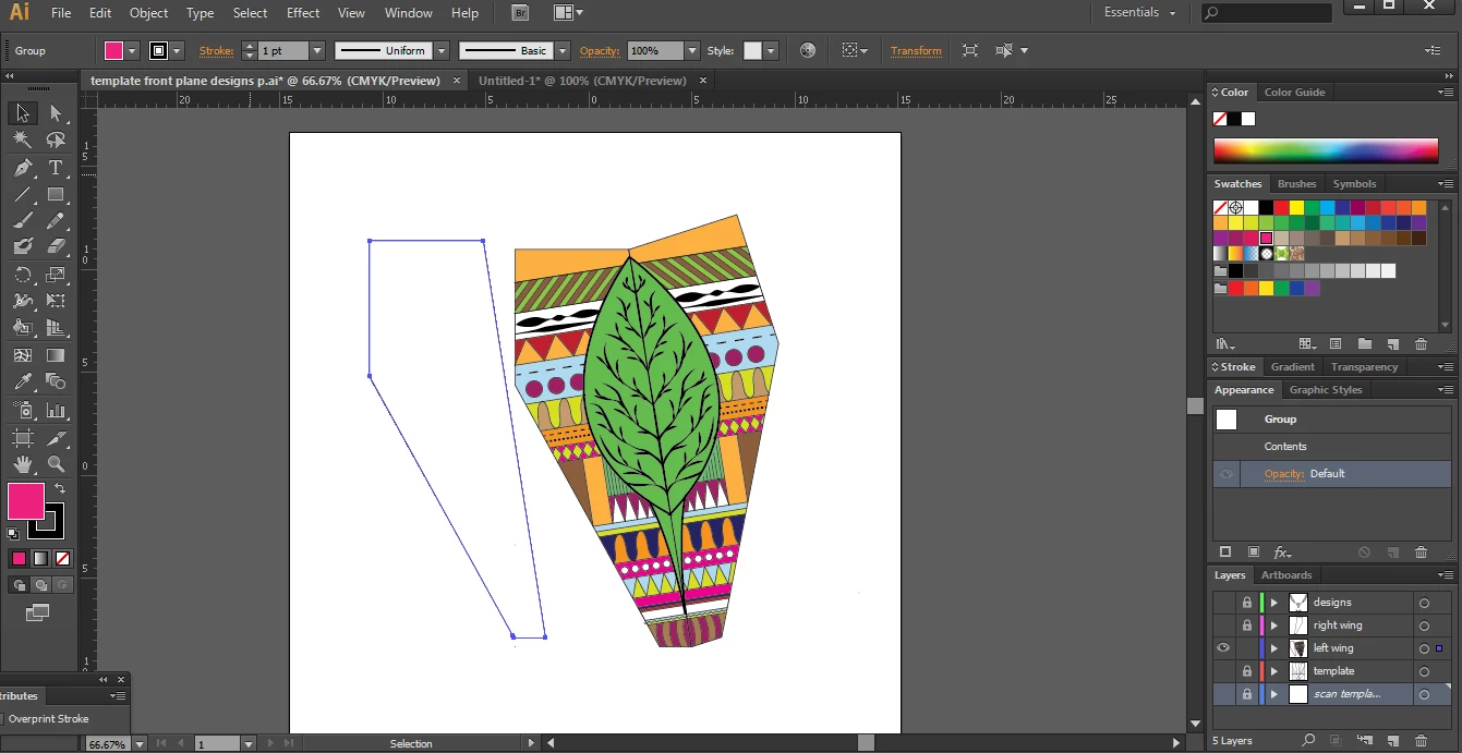 So basically i have designed the top of a paper plane and have completed the top design which i now want to clip into the template using the clipping mask tool. I have used it exactly how it is supposed to'