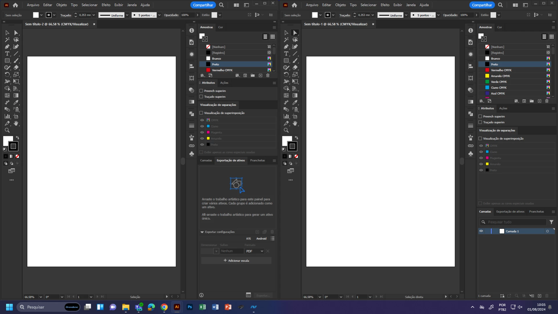 Notem que são dois Illustrator abertos, e não duas janelas no mesmo Illustrator.