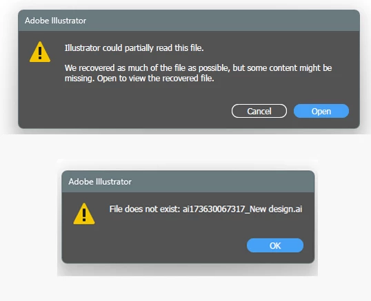 Hello, I need assistance with an issue opening an .ai file. It’s a project I worked on yesterday, but I’ve been unable to open it since this morning. I invested a lot of time in this file, so any help would be greatly appreciated. Thank you in advance.