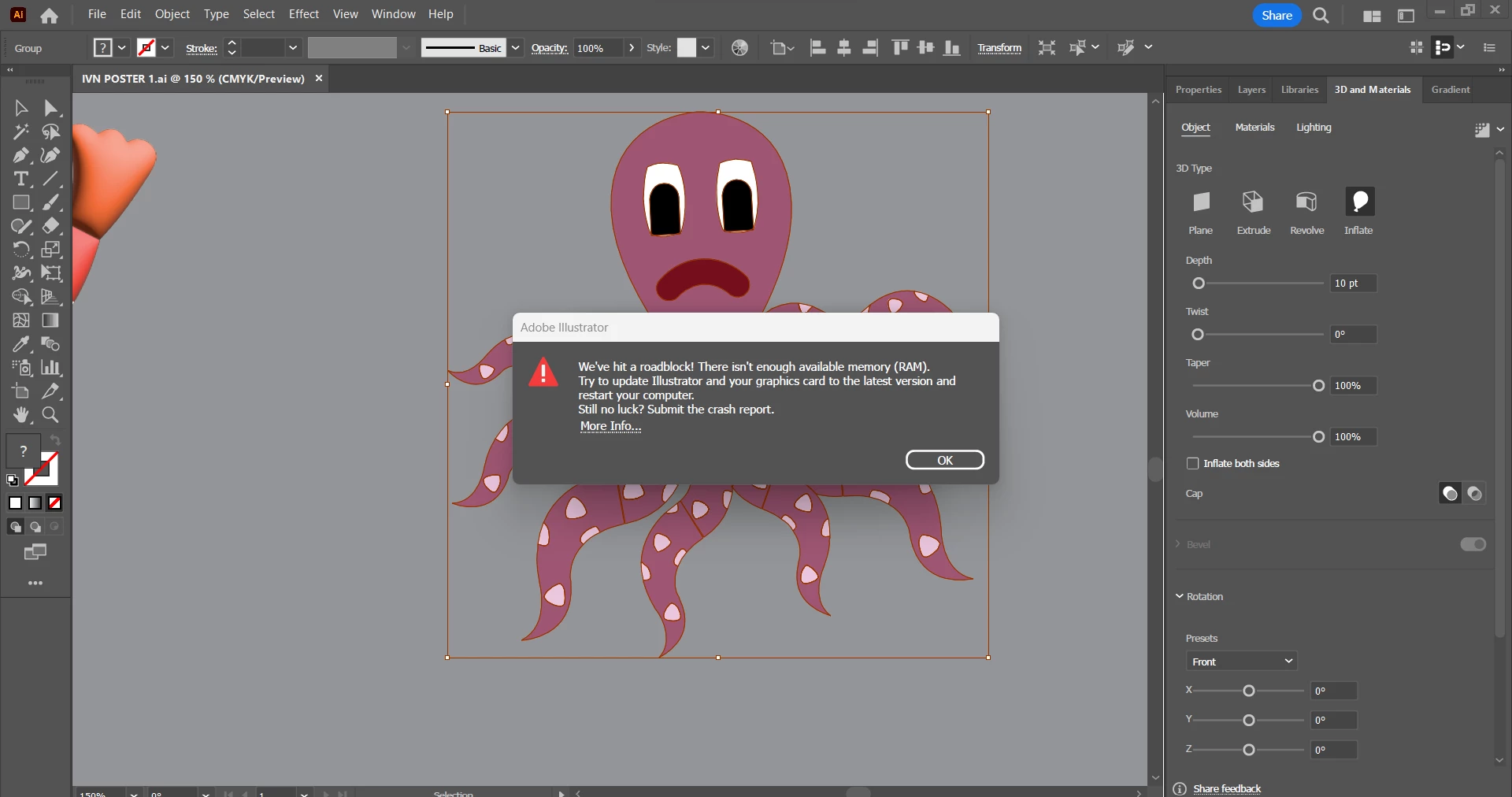 ILLUSTRATOR CRASH DUE TO MEMORY ISSUES