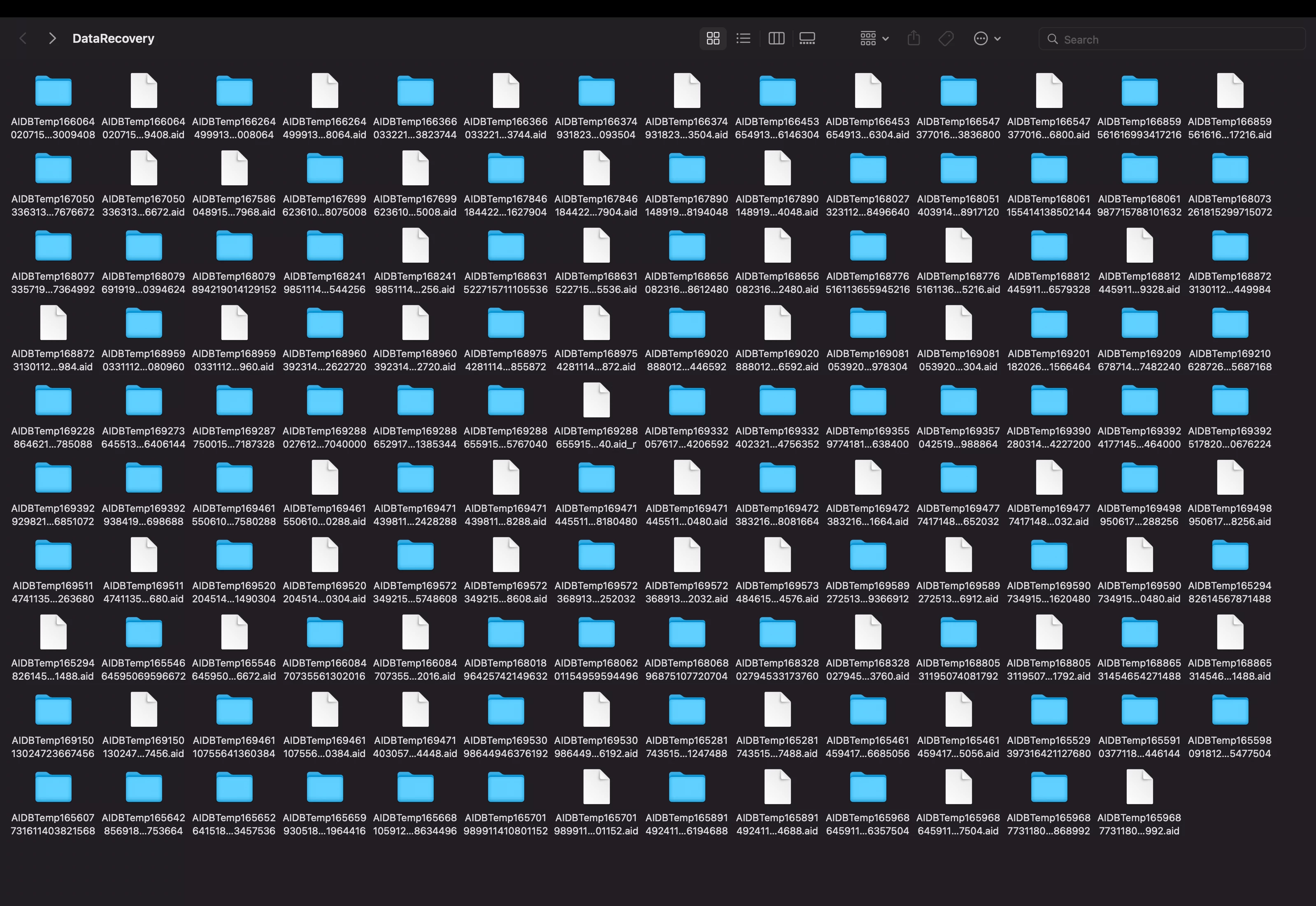 When I located the folder it was full of strange folders named AIDBTemp like in the screenshot attached and unfortunately I cannot open them!