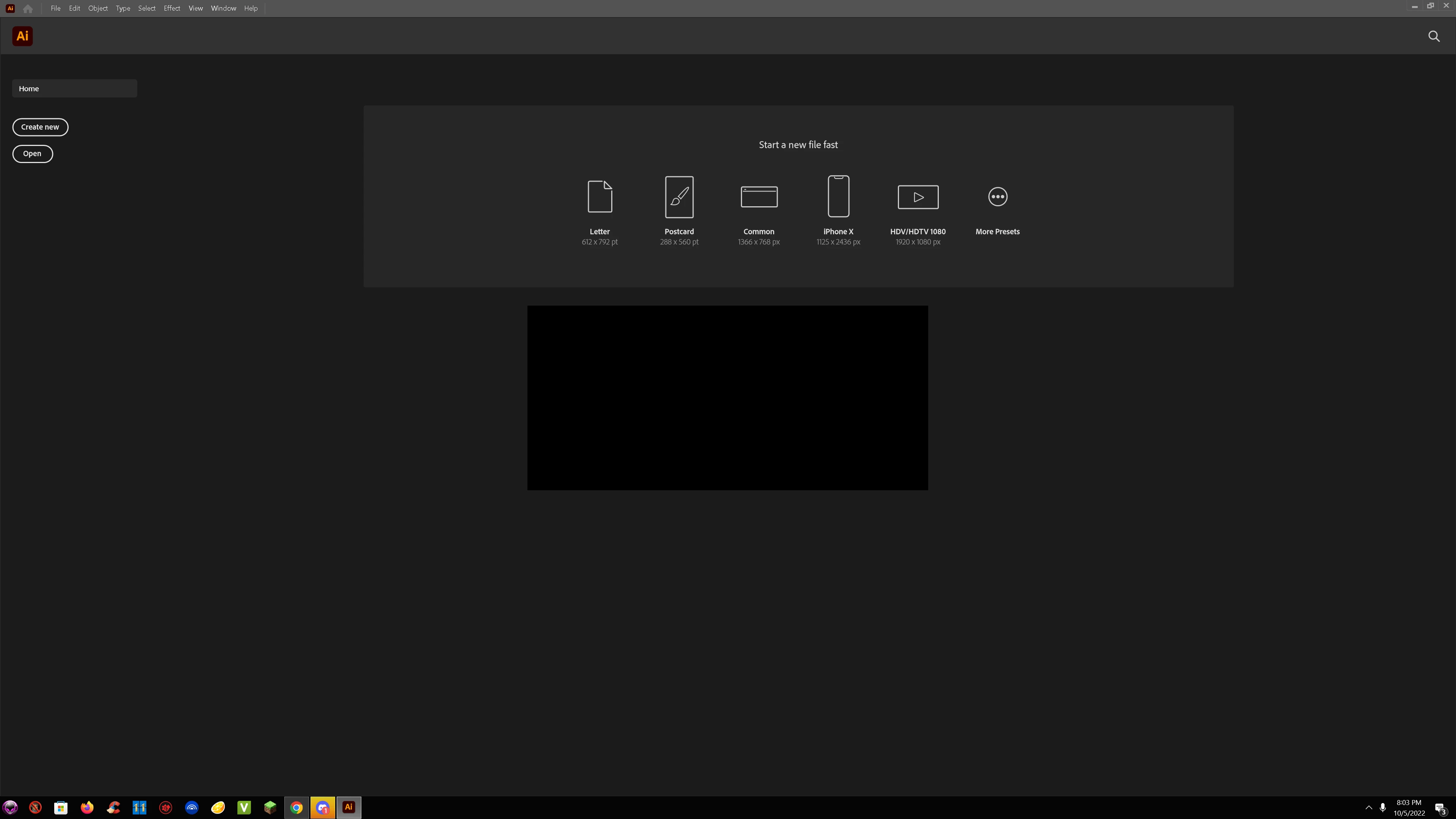 A black box in the center randomly appeared when I tried to use illustrator for the first time since last wednesday and it just wont let me do anything. It seems to act similarlyish to a popup window but there is no seperate tab for it like one should have so idk what to do about it