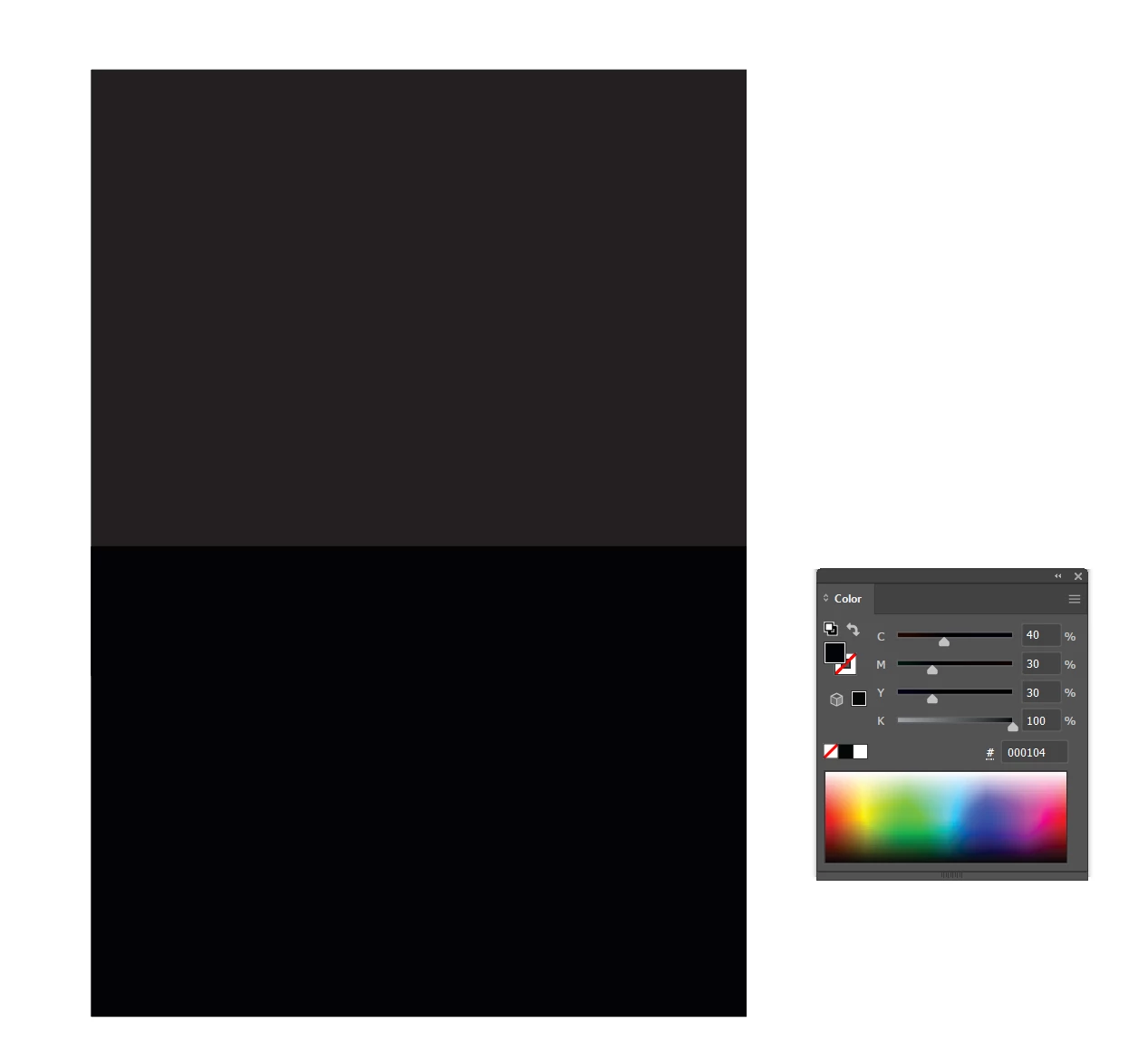 Between 100% black and 40 30 30 100 Black there is no difference!