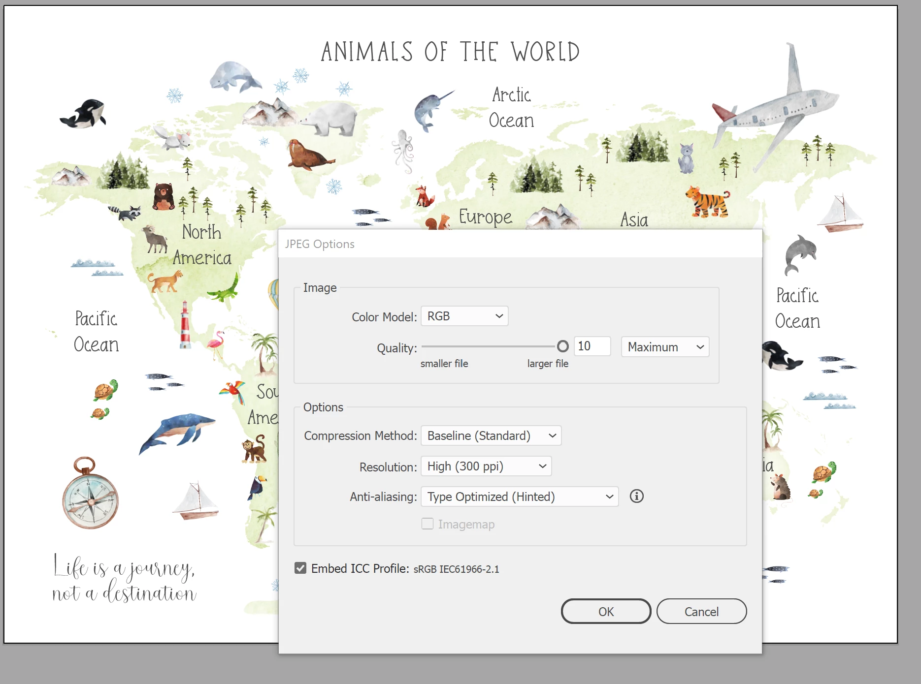 I am creating prints to sell online. They need to be JPEG's and saved at various different sizes from 36" x 24" to 7" x 5".