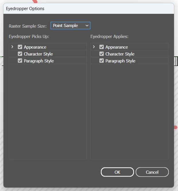 My eyedropper settings are all checked (see below)...