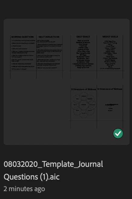 I have a file of jouirnal templates that I've been working on and for a reason to me the file thumbnail turned gray and a green check mark appeared but the worst part is that I can't open the file.