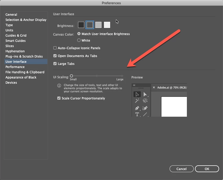 Illustrator interface resolution issue