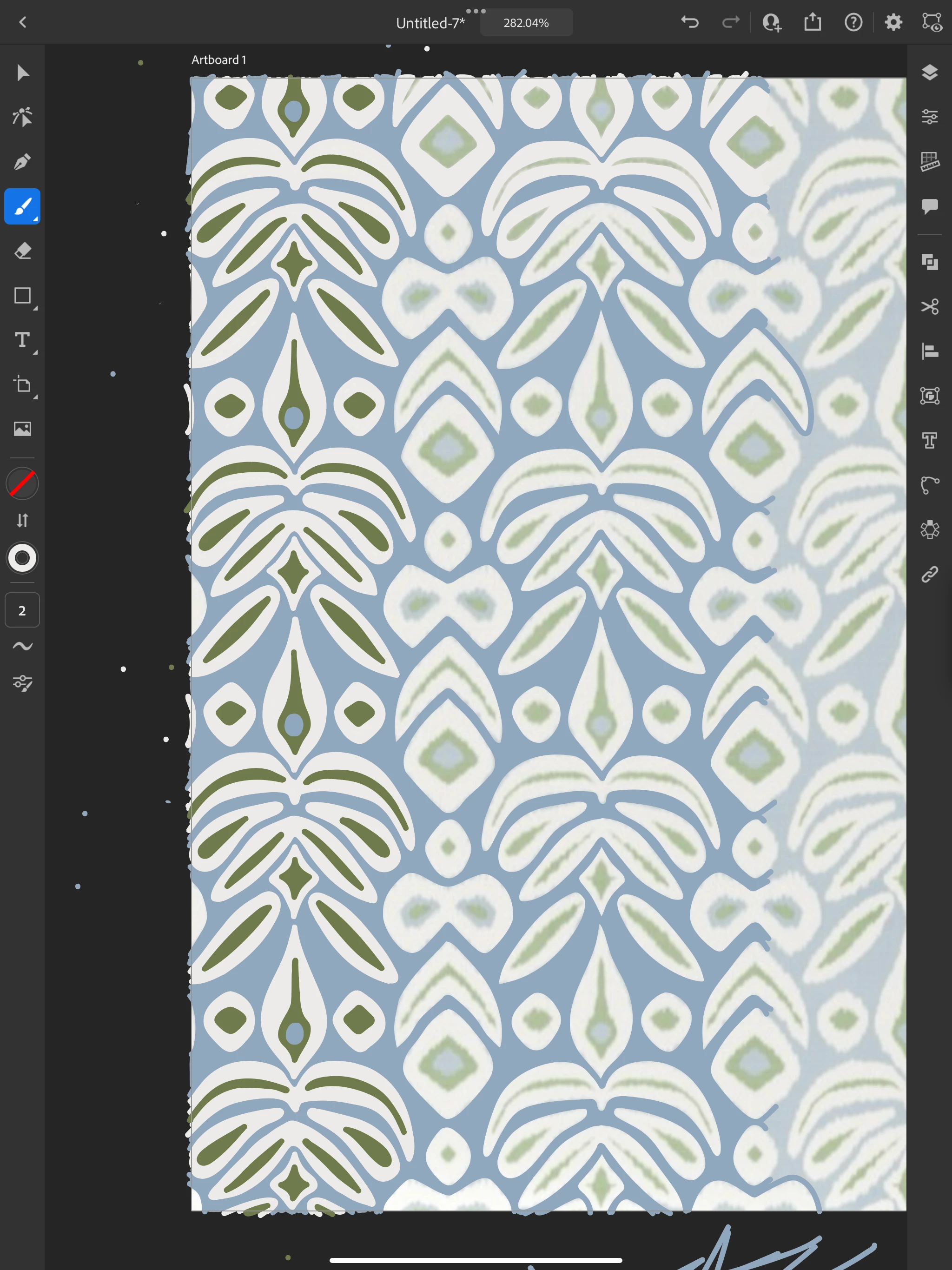 I have the latest illustrator on the latest IPad Air (2024). I have been working on tracing an image that has taken me quite some time, and am using the paint brush, round size 2, with 5 smoothness. After working on it for a while, illustrator changes my brushstroke on the entire image and messes it up. It will go back and forth randomly, and then the app will quit. Once I reopen the app, the image is messed up with the changed brushstroke. But once I choose the brushstroke I was using (saved it on my favorites), and start drawing again, it goes back to normal. It will then change it up and I have to start this whole cycle again. What do I do? I will include images. Thanks.