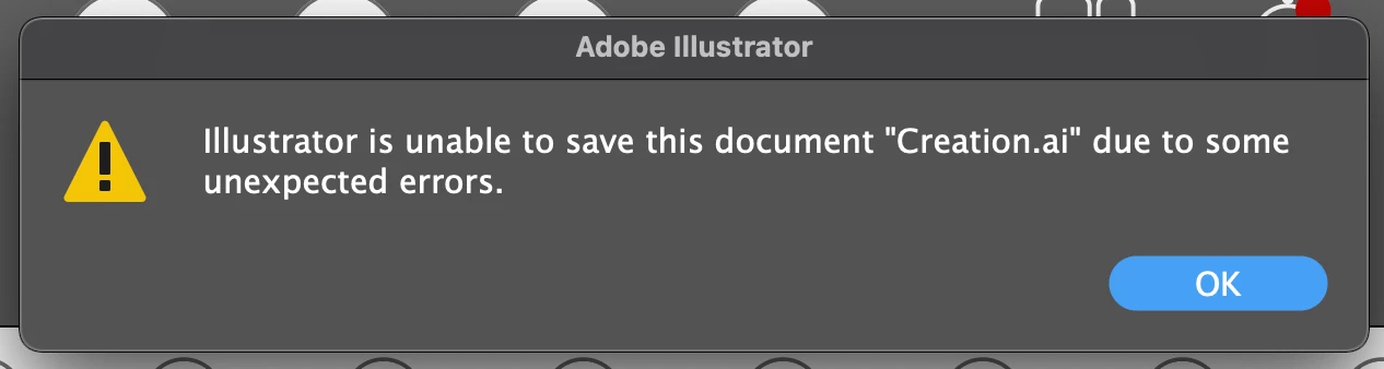 Illustrator is unable to save this document "xxx.ai" due to some unknown errors.