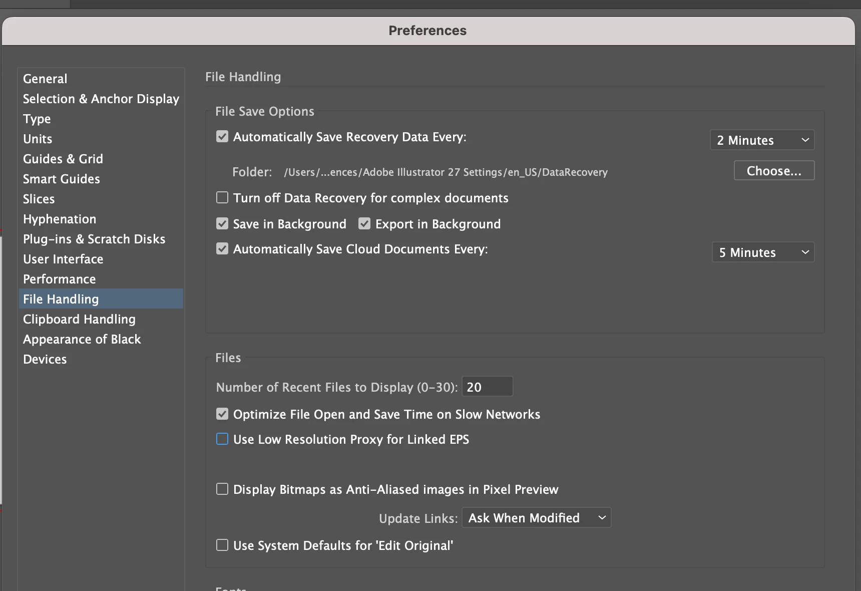 The ai file was saved to my desktop, and when I open it now it's a very old version from a couple days ago. It hasn't backed up to the creative cloud, and the 'Data Recovery' folder also seems to be entirely empty.