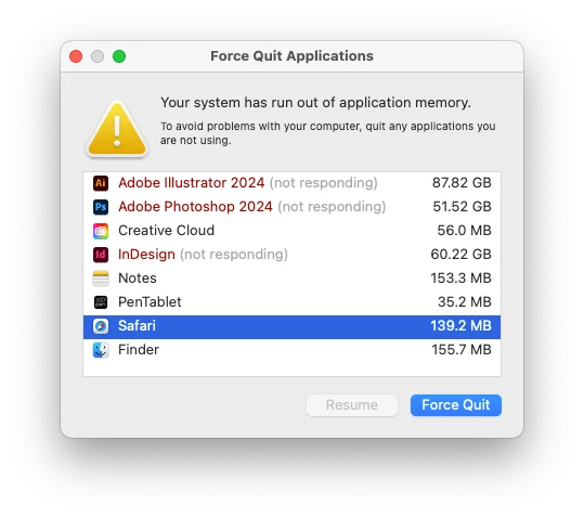 @iammikedeleon not enough RAM....with Generative AI in many of the applications, those are huge RAM sucking apps. So, quit the one s you don't need, and you should be fine...and if you have music or video streaming in the background too!