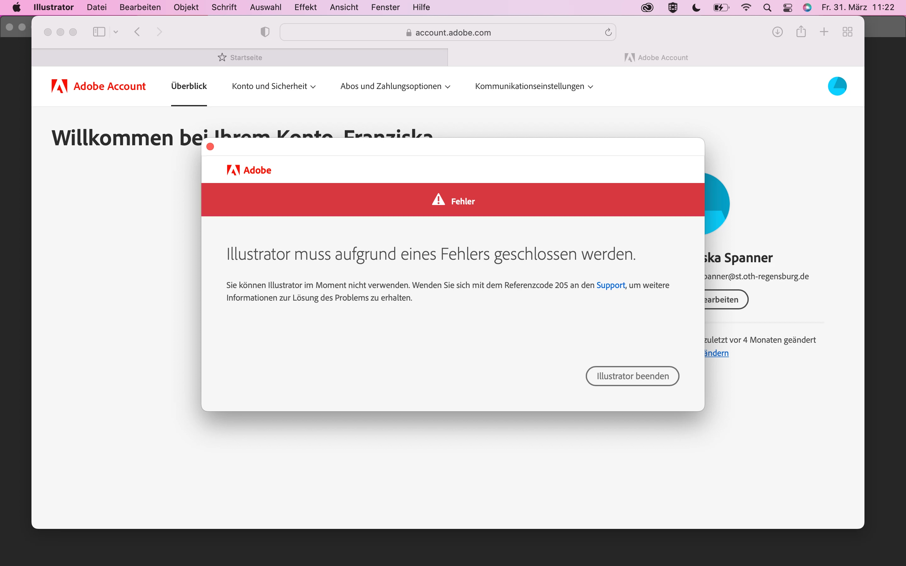 Wenn ich mein Illustrator auf meinem Laptop öffne kommt immer diese Fehlermeldung.