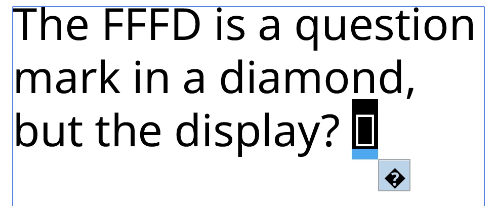 is a black diamond with a question mark symbol. Even if the glyph is included, it does'nt display on the text box, just a tofu box. Help me please fix it, even it’s not correct!