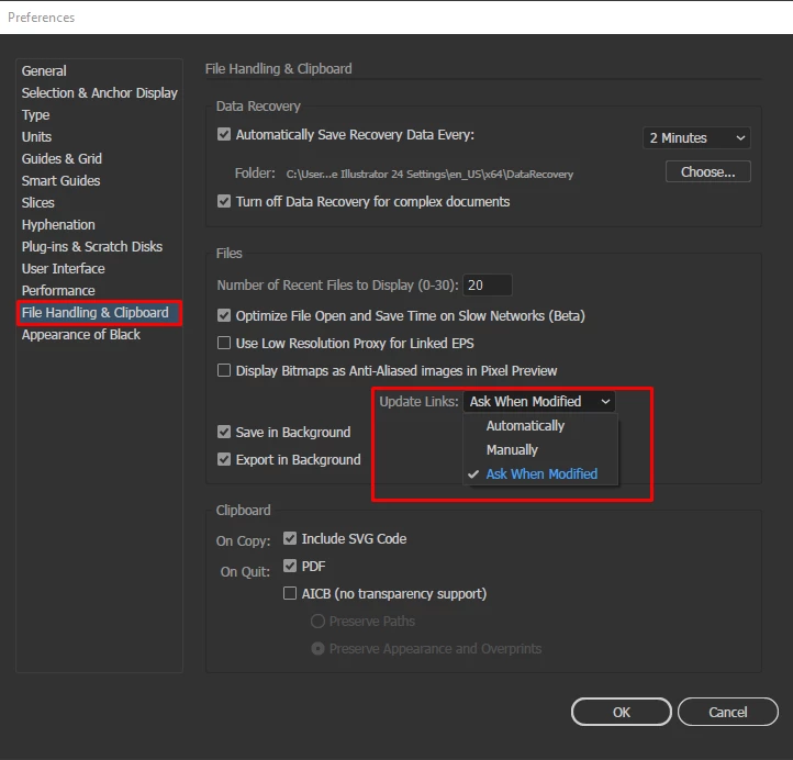 Illustrator not updating links automatically
