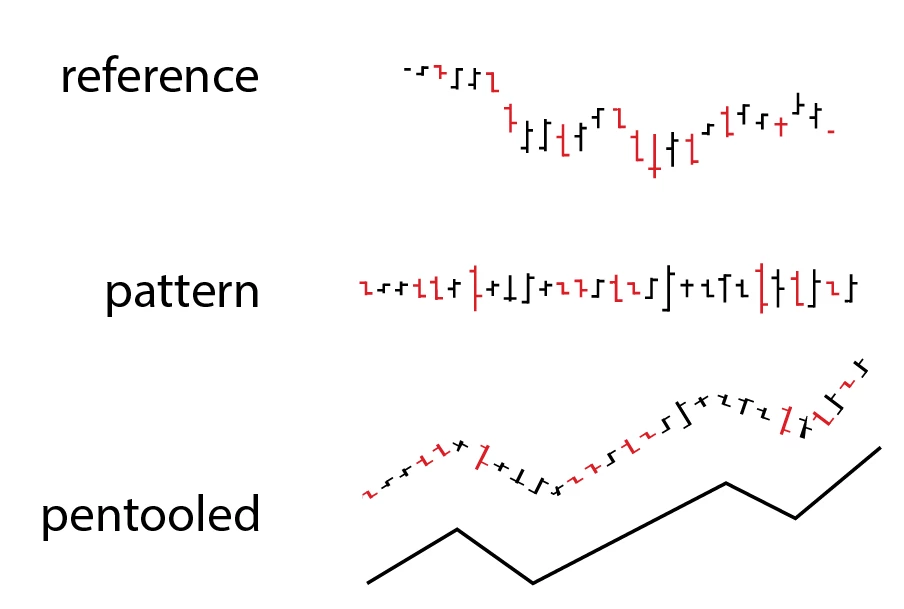 Anyway to achieved the reference image? I tried to used the pattern and put it into the third diagram(pentooled) but the problem is, it gets distorted and I dont want that.. Is there anyway to fix this or even a third party/addon/scripts for this? Lmk thanks