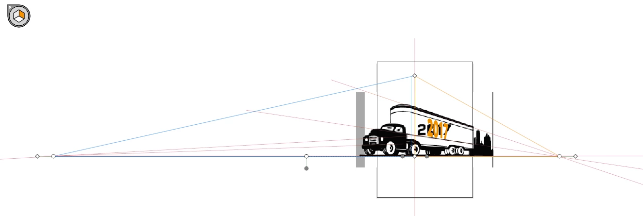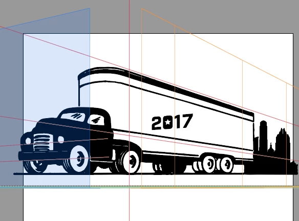 I have an existing stock illustration that is in perspective and would like to place text on this art in this same perspective. I am having difficulty adjusting the perspective grid to the existing art (as shown below—would like the 2017 to align with the truck's trailer).