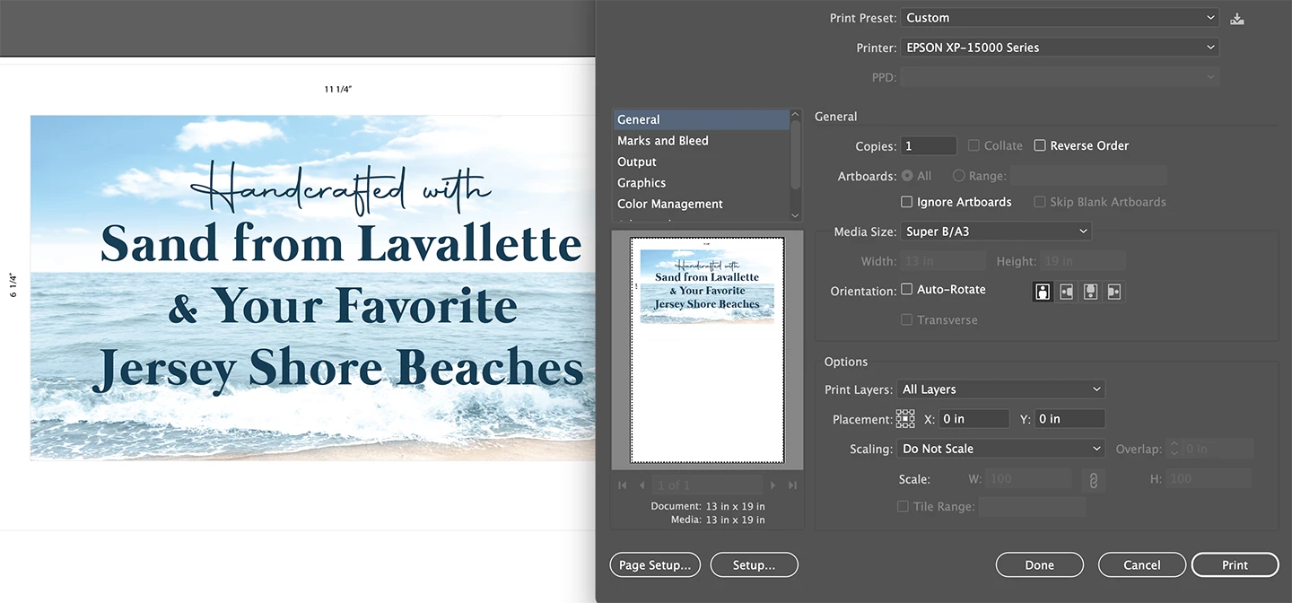 I have an image that is 6 1/4" x 11 1/4", but prints out at 6 1/16" x 11". There was no scaling or "fit to page" turned on. The print window was 100%, just like I always use. I printed the same image at the same 6 1/4" x 11 1/4" in both Illustrator and Photoshop and got the same result-smaller. Not sure if it's these programs, or the new Epson XP 15000 printer I bought recently. I am at a complete loss as to what to do, other than oversize the images digitally so that they print out physically print out to the right size. Is there anyone who can suggest what I can do? The attached screencap shows the details. Thank You, Carl