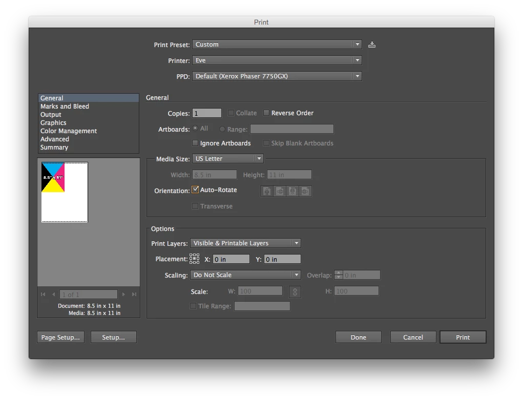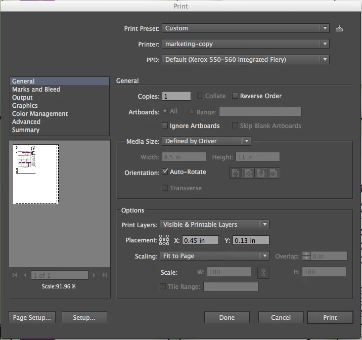 When I go to print a file, the print preview is not displaying the file properly. It is showing it smaller than it is actually printing out in relation to the size of the window. I left work one day and it was functioning properly. The next day it started printing weird. How it is functioning now, I cannot leave the file as "do not scale" as I can't properly gauge who the printer will output. I've reinstalled the printer drivers as well as uninstalling and reinstalling Illustrator. Any ideas?
