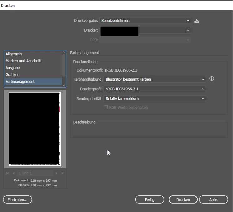 i am trying to print a colour document in illustrator.
