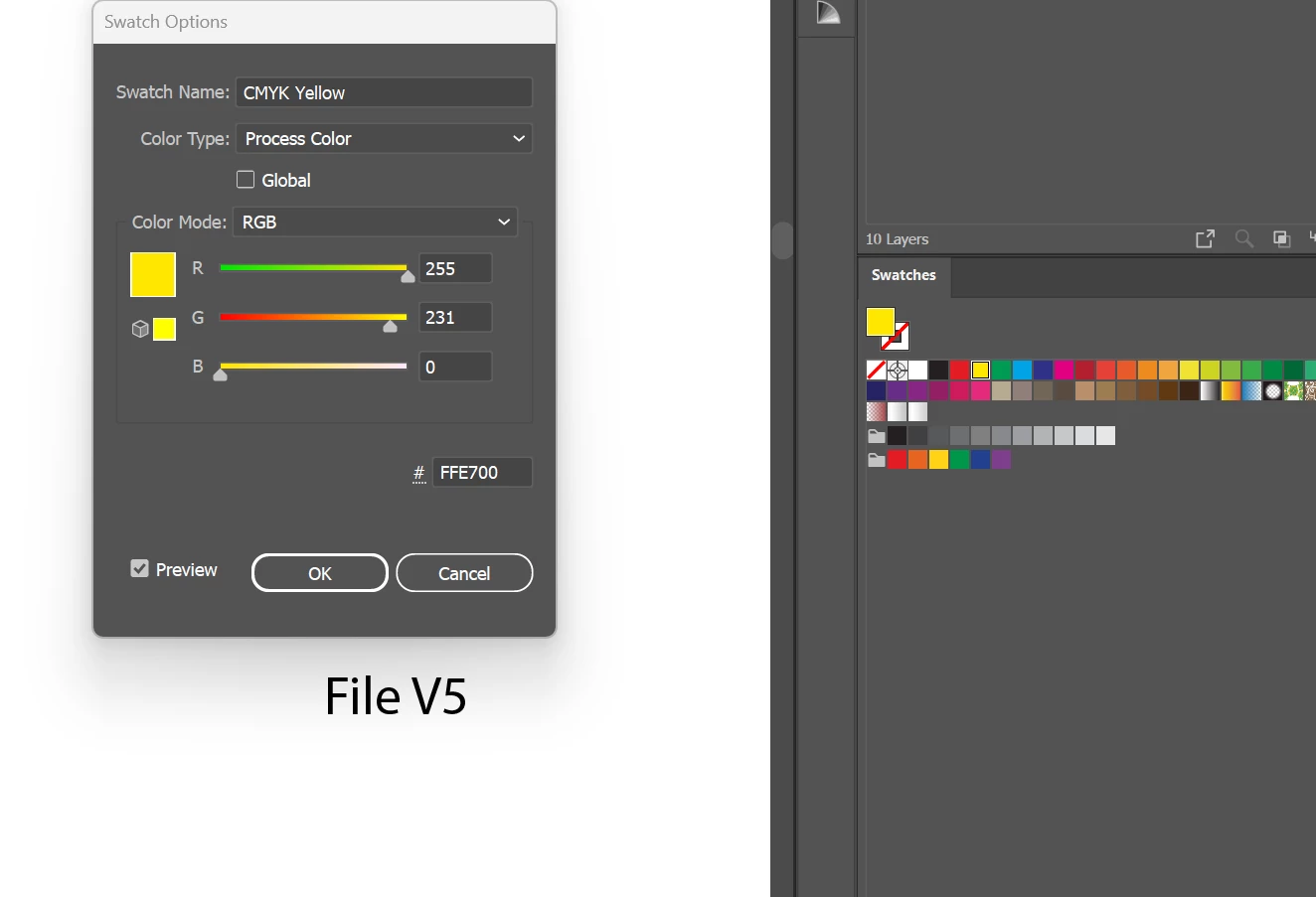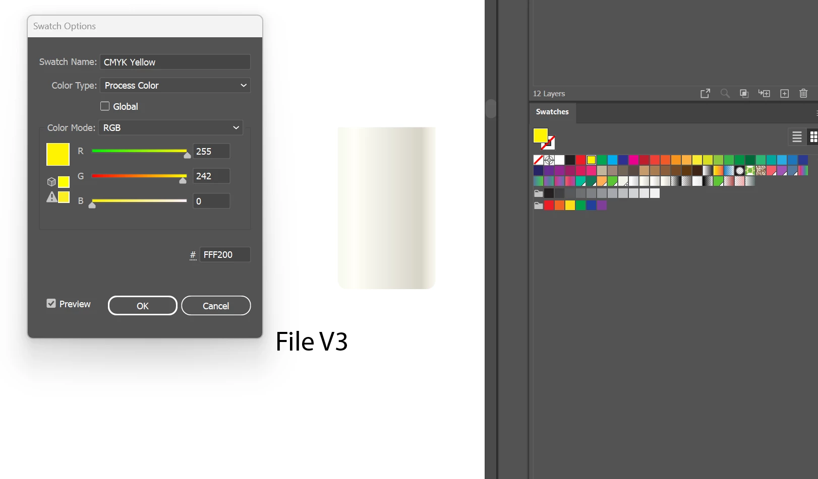 The V3 yellow matches the yellow when you open a new file: I'm working on an A3 sheet but set the template to RGB.