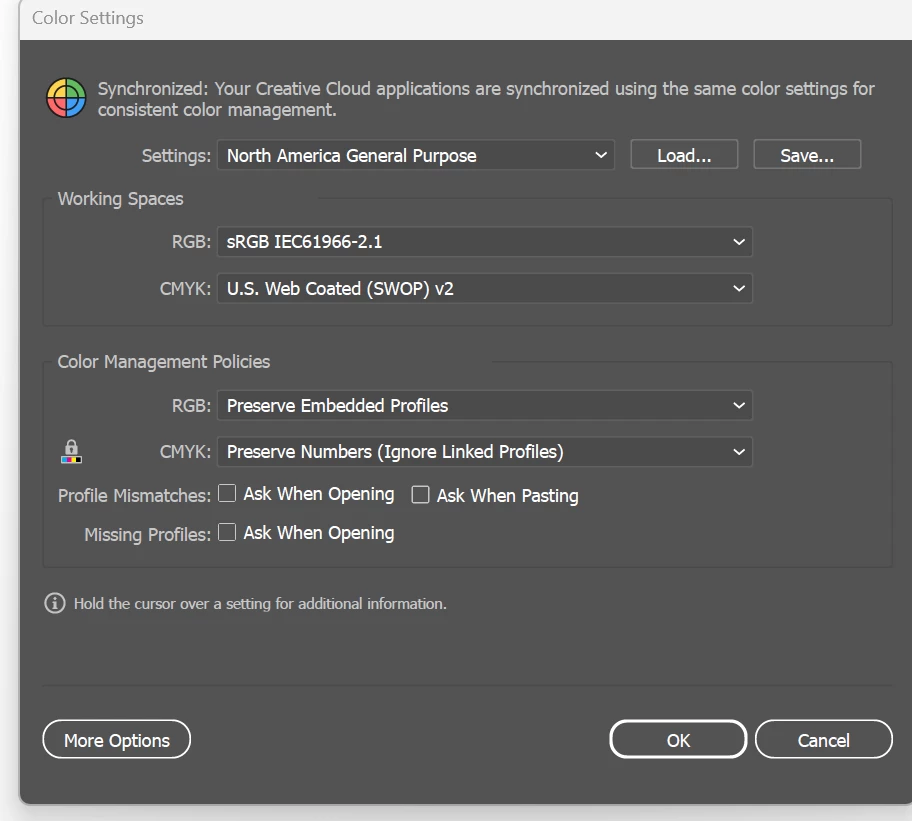 Colour Settings are the same across all files.