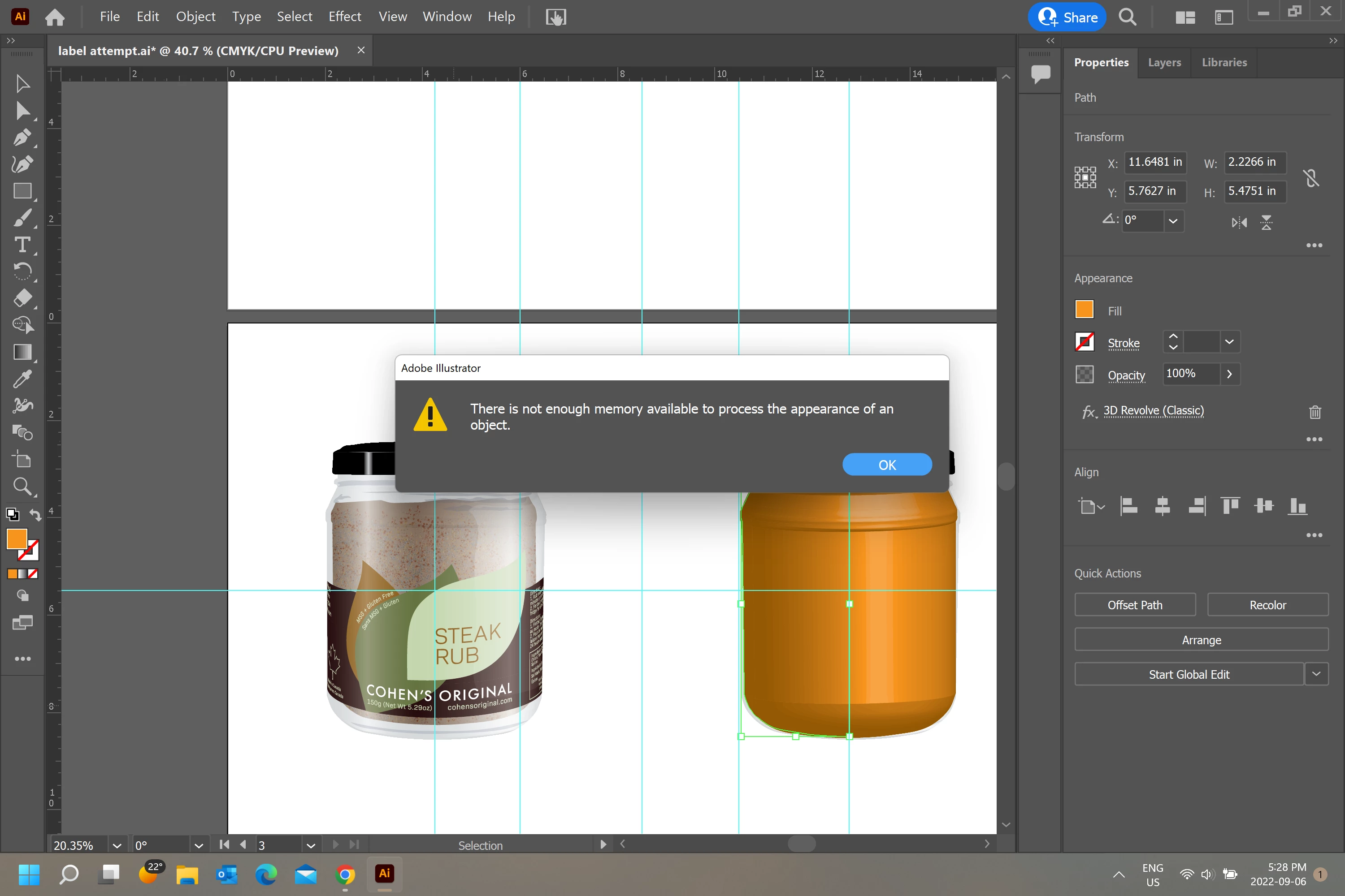 I'm having a problem with Illustrator running painfully slowly for one of my files. This is for an assignment that is requiring me to use 3D Classic effects. It seems OK with other files.