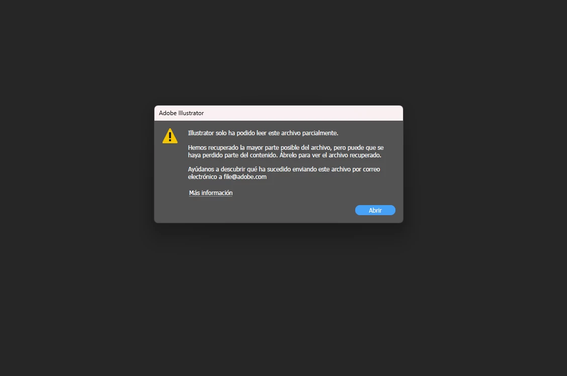 Illustrator solo ha podido leer este archivo parcialmente