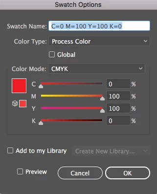 I'm still unclear on what is actually being done when I make this change in the Swatches panel.My previously CMYK colour…a CMYK swatch (a red colour in this case)…is now regarded by Illustrator as a Spot colour…So some kind of change has taken place - from CMYK to Spot. |