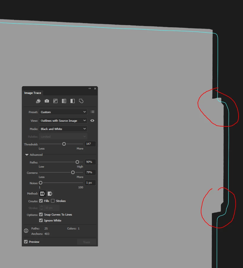 So the trace tool is fine, but what's happening is somewhere it limits the max resolution for whatever reason and ends up producing a pile of sh*t when I use it. And, needless to say, I need this to deliver a job.