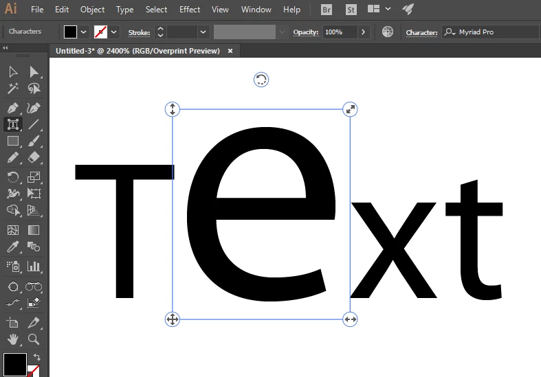 I'm creating a word out of a number of different typefaces, I've created a text box for each individual letter so I can quickly alter the typeface used and the size so it fits with the baseline and cap height of the other letters. When I try and scale the individual letters, rather than scaling like InDesign (keeping the bottom fixed in place and in the direction dragged), it moves the bottom up as if it were magnifying it from a point. This is incredibly difficult to explain but I've tried to attempt this in the images attached below. I don't know if there's a quick fix to this or this is an unsolvable 'quirk' of illustrator. I know I could create outlines but this removes the ability to quickly edit the letters. It's not a huge problem but having to resize it and then move it every time is incredibly frustrating and takes about double the time.