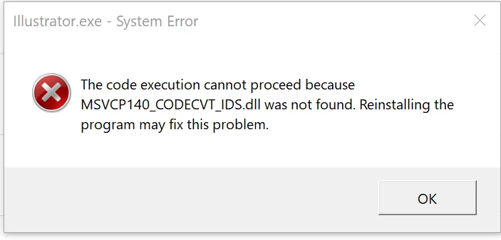 Illustrator unable to launch due to missing .ddl file/ corrupted Visual C++ redistributable package