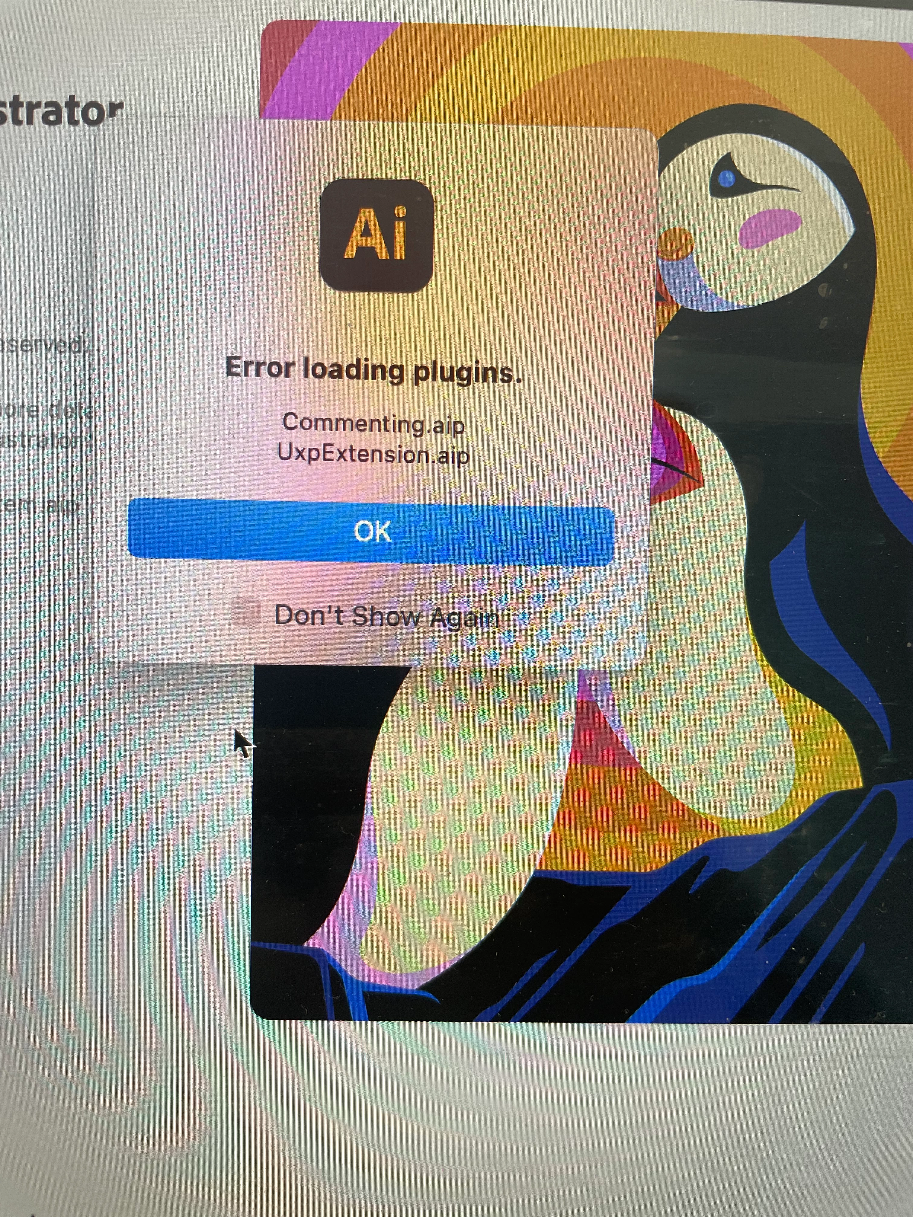 Illustrator won't open: Error loading plugins Commenting .aip and UxpExtension.aip