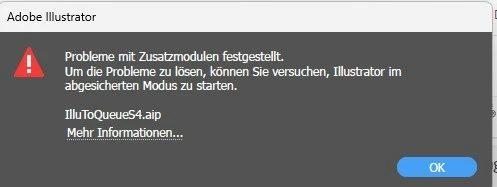 Recently I've been getting the error message that the additional module IllutoqueueS4 has an error. Illustrator then starts normally.