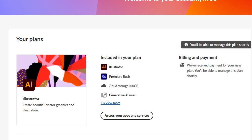 Hey chat. I have an active Creative Cloud subscription for Illustrator. My account page confirms this. However, the Illustrator API is not visible for me to add to my project in the Adobe Developer Console. Can you please share how to solve this and whether it is a sync issue.