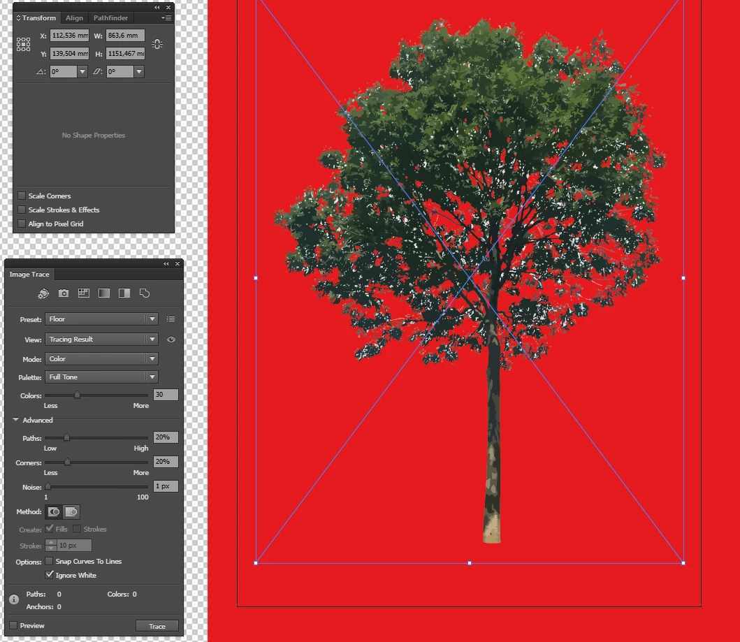 I am tracing a png of a tree, in photoshop I made the background transparant.