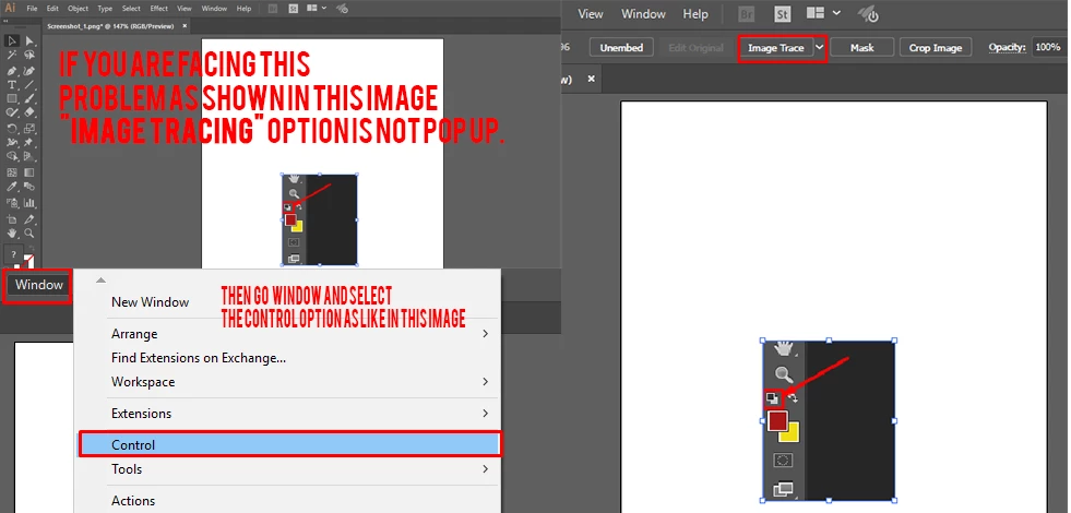 I am having trouble converting a scanned image into vector. I am using the latest AI CC and when I select the photo the image trace option doesn't pop up. When I go to windows to select the option the options of image trace window is in active and I cannot select the abilities it has. Please help with this problem I have used image trace in the past but never with AI CC.