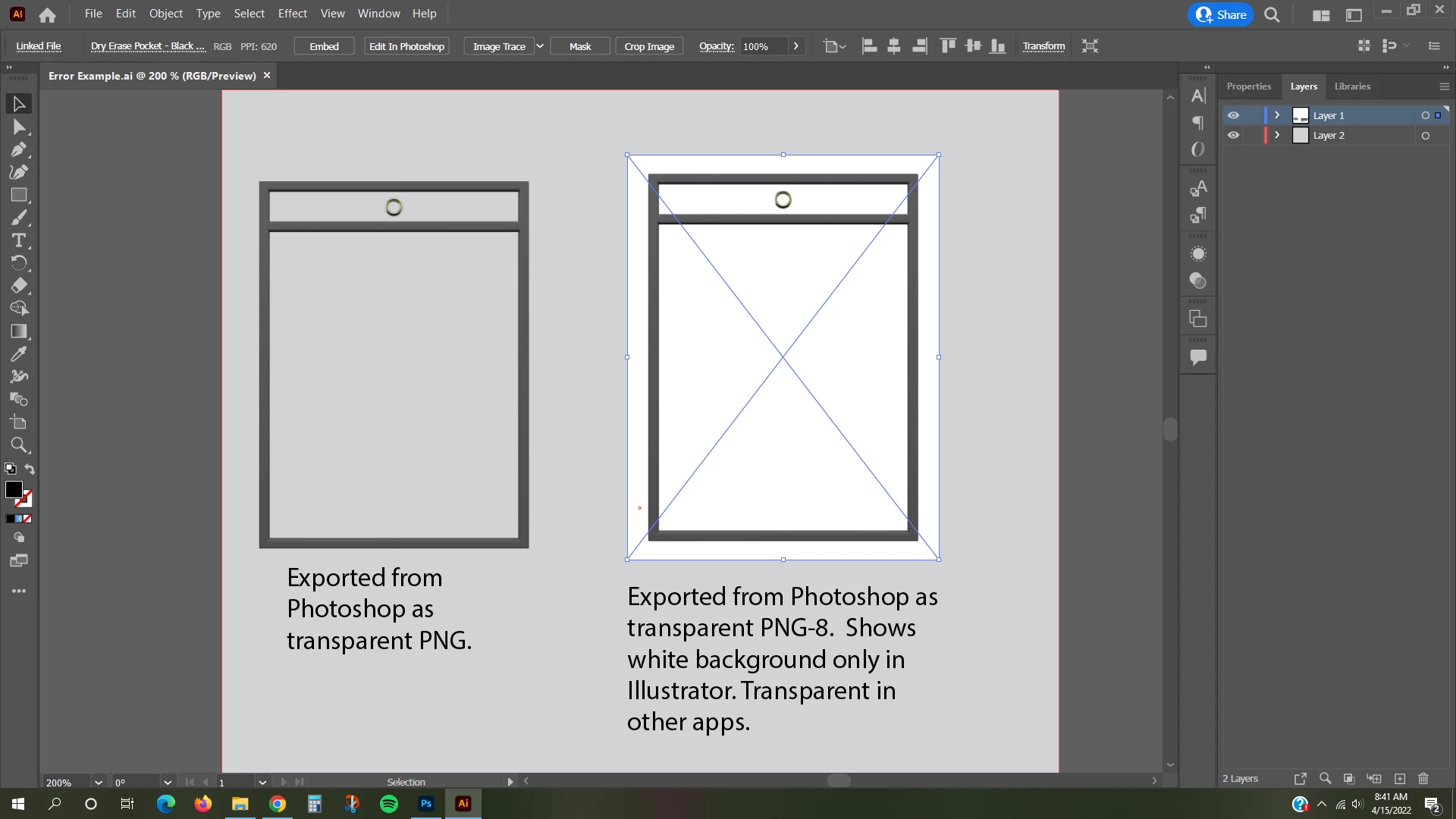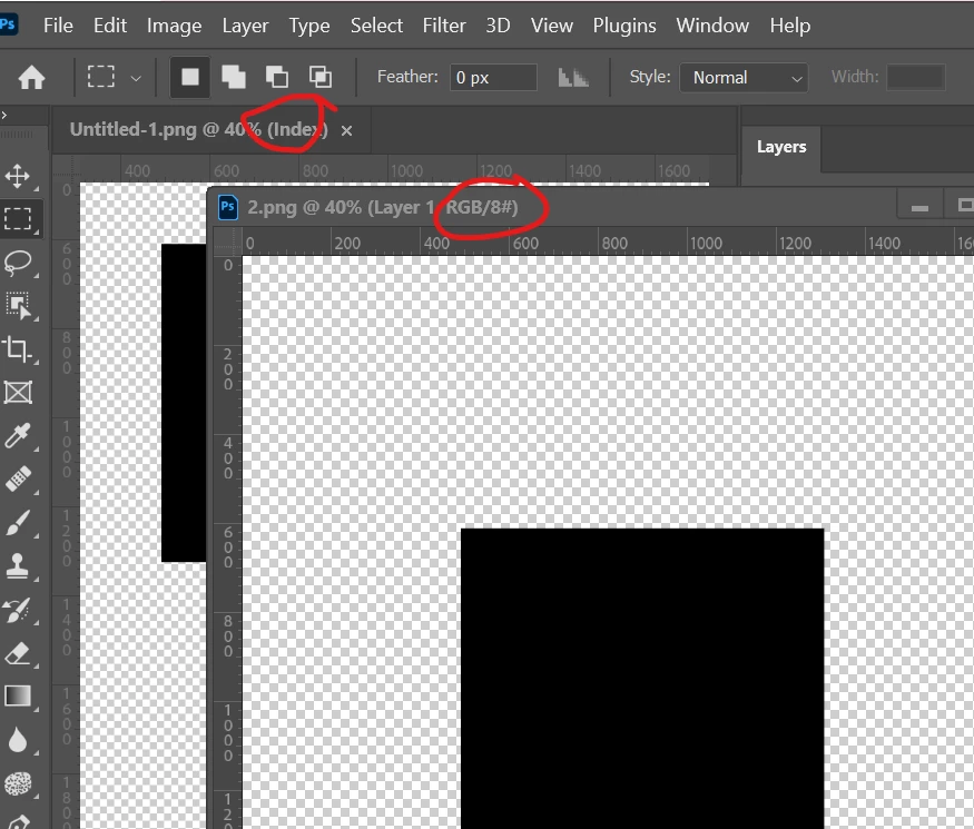 In the screenshots, notice that the transparent image says "transparent RGB" and the other one says "RGB".