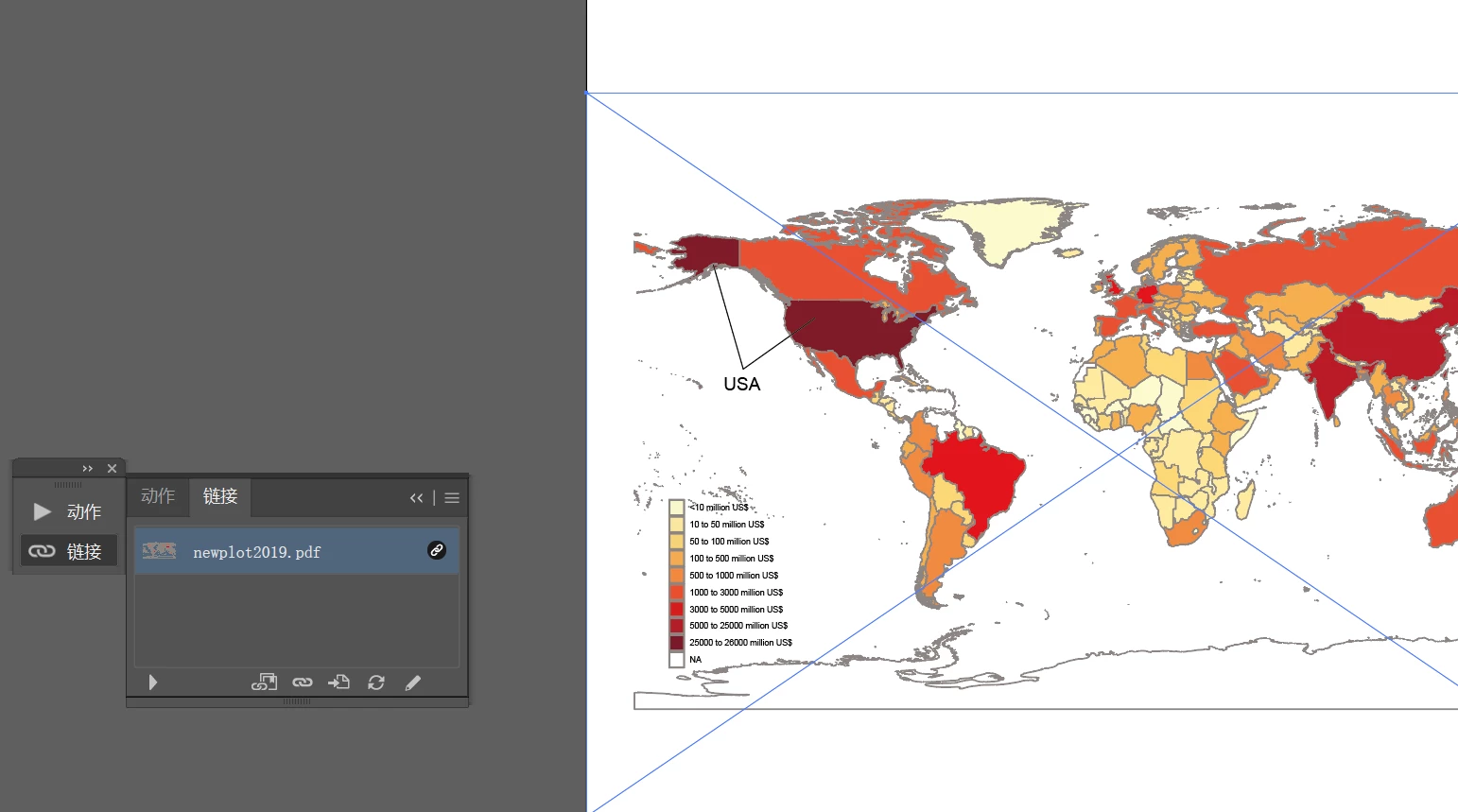 I created a map using R and wanted to edit it in Adobe Illustrator. However, I found that some countries' colors were missing when I imported the generated PDF file into Illustrator. (The first image is the one I generated in R, and the second image is after editing in AI. As you can see, the color blocks for Canada are missing.)
