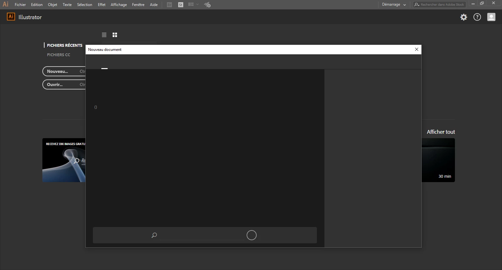 Impossible de créer un nouveau document sur Adobe Illustrator.