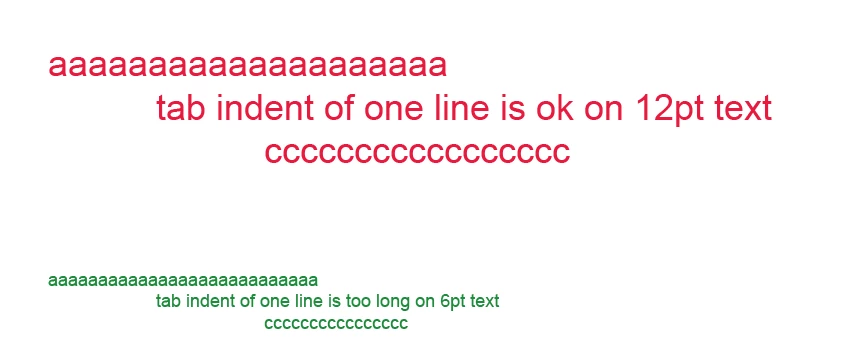 in text object, press tab on beginning of each line makes TOO LONG indent.