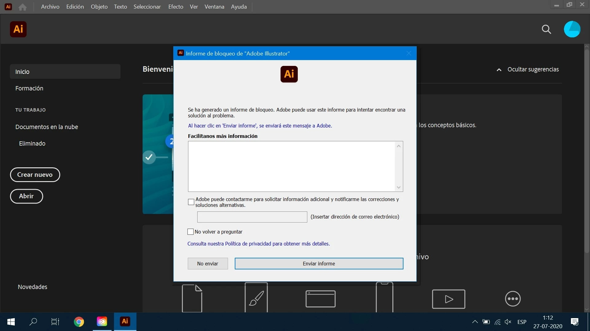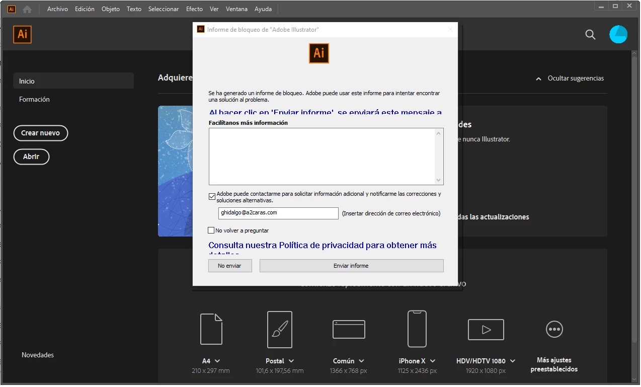 Informe de bloqueo de Illustrator