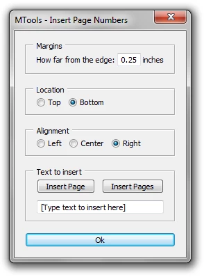 // Its primary function is to insert Page Numbers, but it could be used to insert any other kind of information.