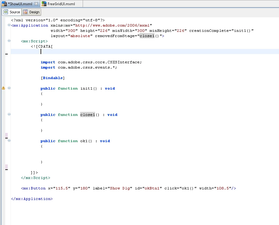 I have Create a FlashUI With 2 Dialogs(With 2 Extension ids in Extension list and Two Separate mxml Files).