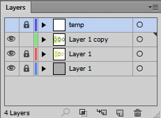 Then a temp layer was created on top. After working with the temp layer, it is shown in the layers palette as highlighted in blue - it is the active layer.