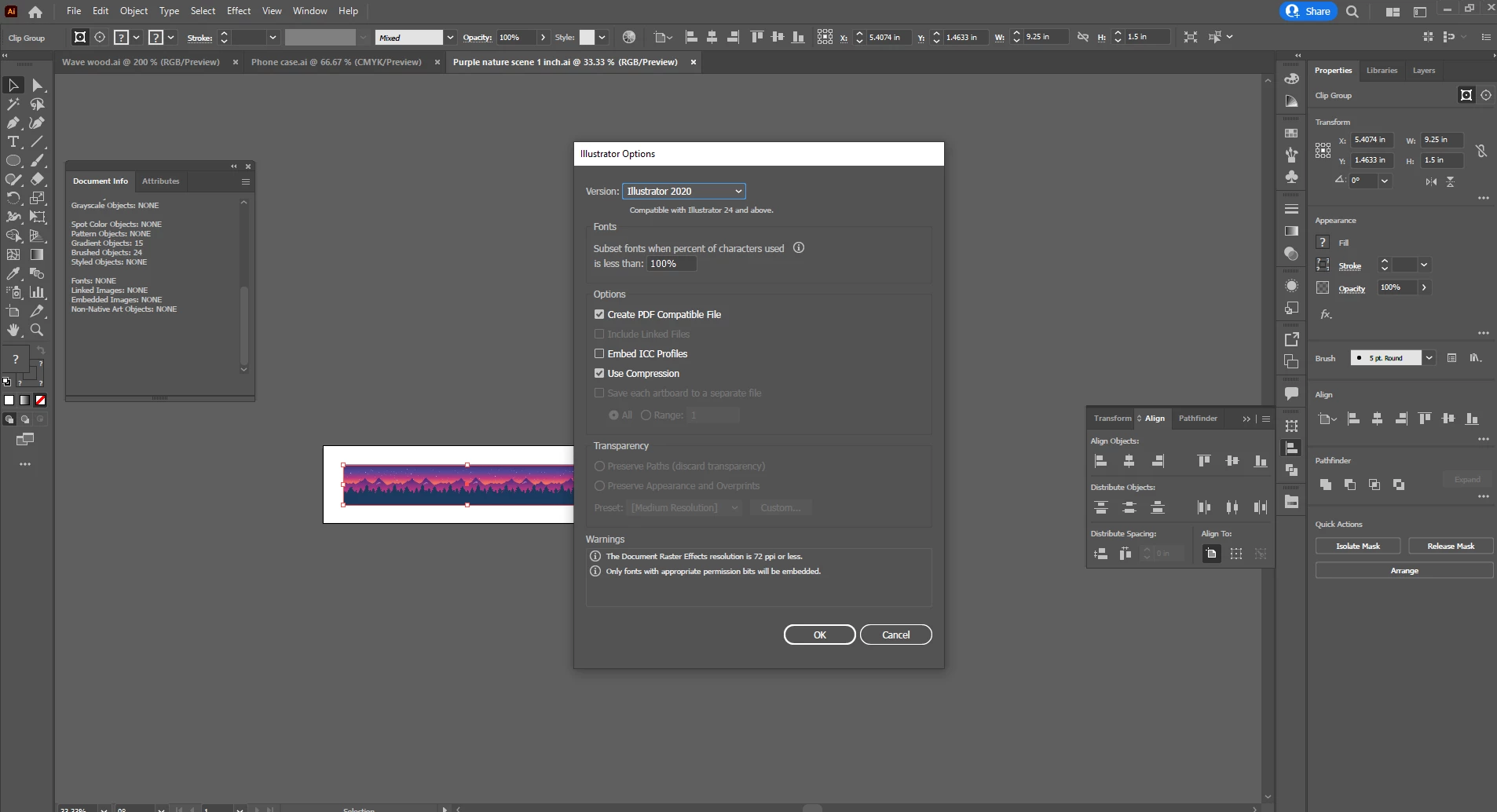 Hoping somebody can help me out. I've been working on some straps to get printed and was instructed to send them to the printing company as 9.25 inches wide and 1.5 inches high. I've saved them that way and when I open the file on my end, the size is correct. The fella at the printing company however says that when he opens the file up, the size isn't correct on his end. Would anybody know why the size isn't remaining consistent when I send it over to him? Not sure if there's a setting I'm missing? Thanks in advance for any insight!