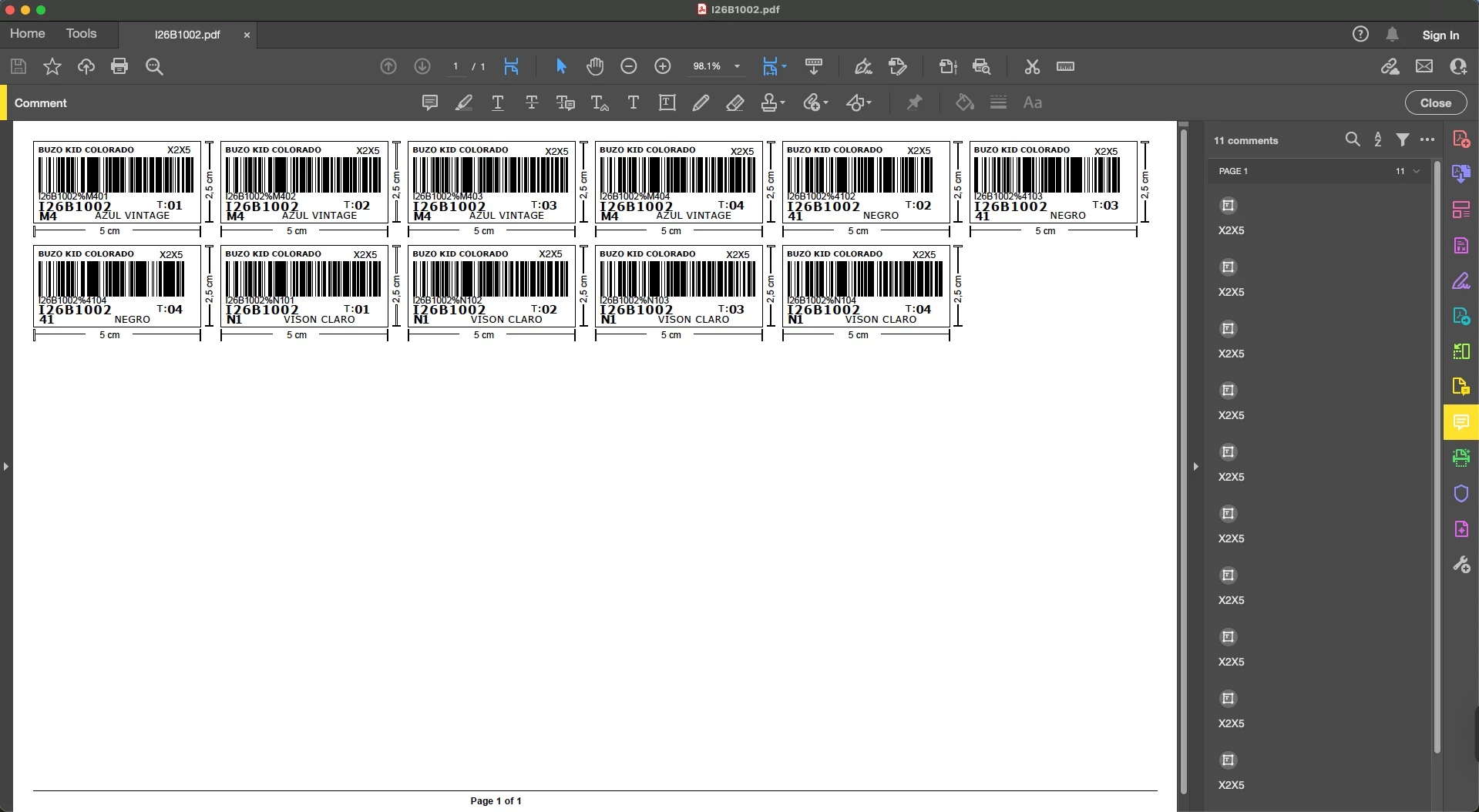 When I add a FreeText comment (annotation) in Acrobat Pro (for example: a label like "X2X5" placed near a barcode), the comment is clearly visible inside Acrobat — but completely disappears when I open the same PDF in Adobe Illustrator.