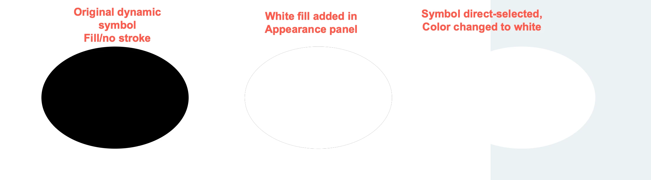 I have created a dynamic symbol, and placed it in a file. The original is black. I am changing this instance of the symbol to white, and there is an outline showing up. I'm not sure how to remove this, as I don't have any outlines on the original, and the stroke is marked as nill. There are no other layers visible currently.