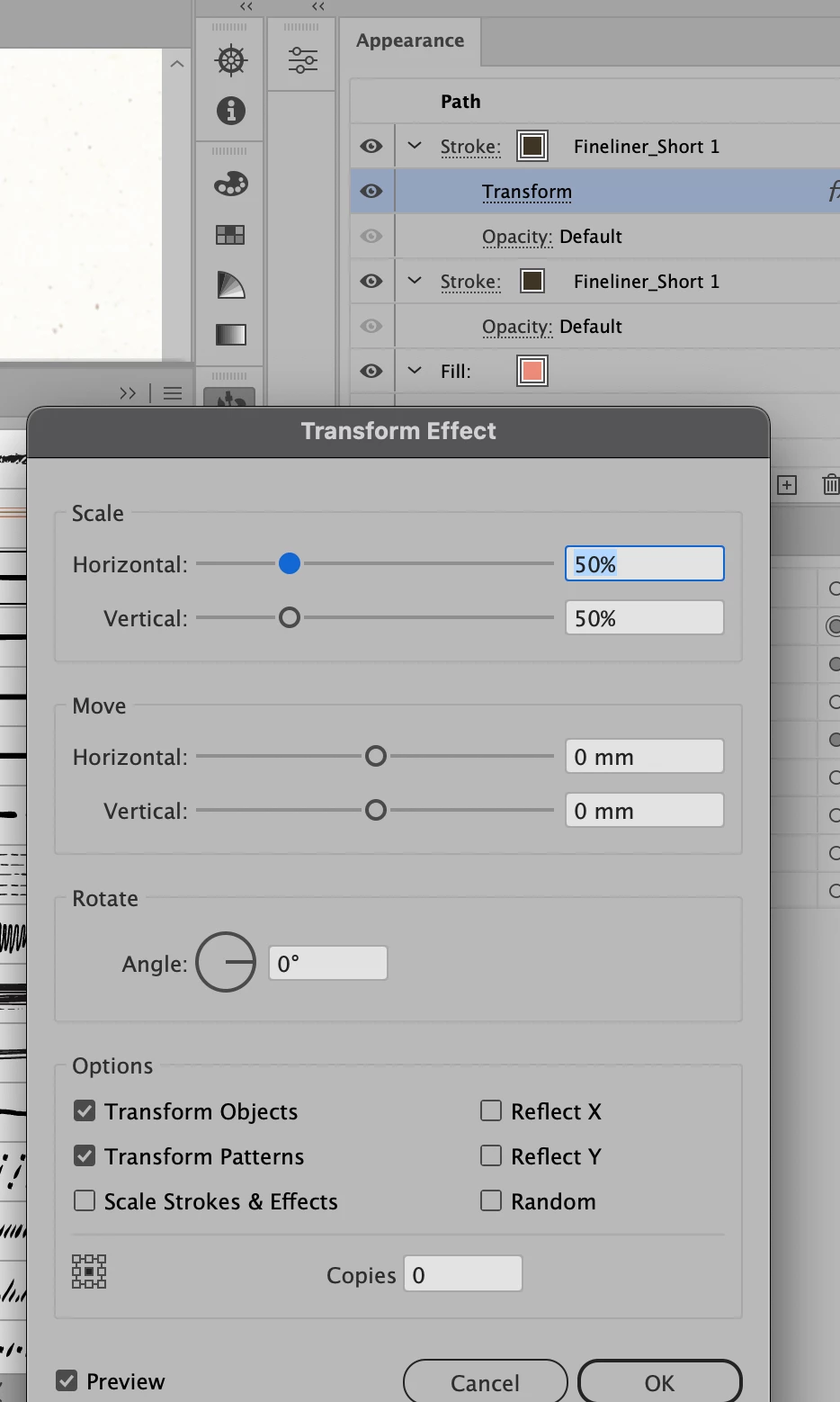 Issue with Transform effect in Appearance Panel and Stroke with brush applied