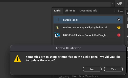 Issues Linking Files in Adobe illustrator