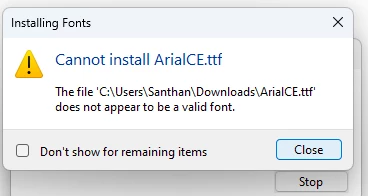 Iam trying to install the fonts i can download but i can't install the font and also if the font missing the text will appear with pink color tint but this one nothing showing only shrink the text iam checked Horizon Scale its 100% i used, now iam trying to avoid this font, please advice how to solve the problem i attached the screenshots also and AI file please check and let me know,  may be its opening properly on your PC